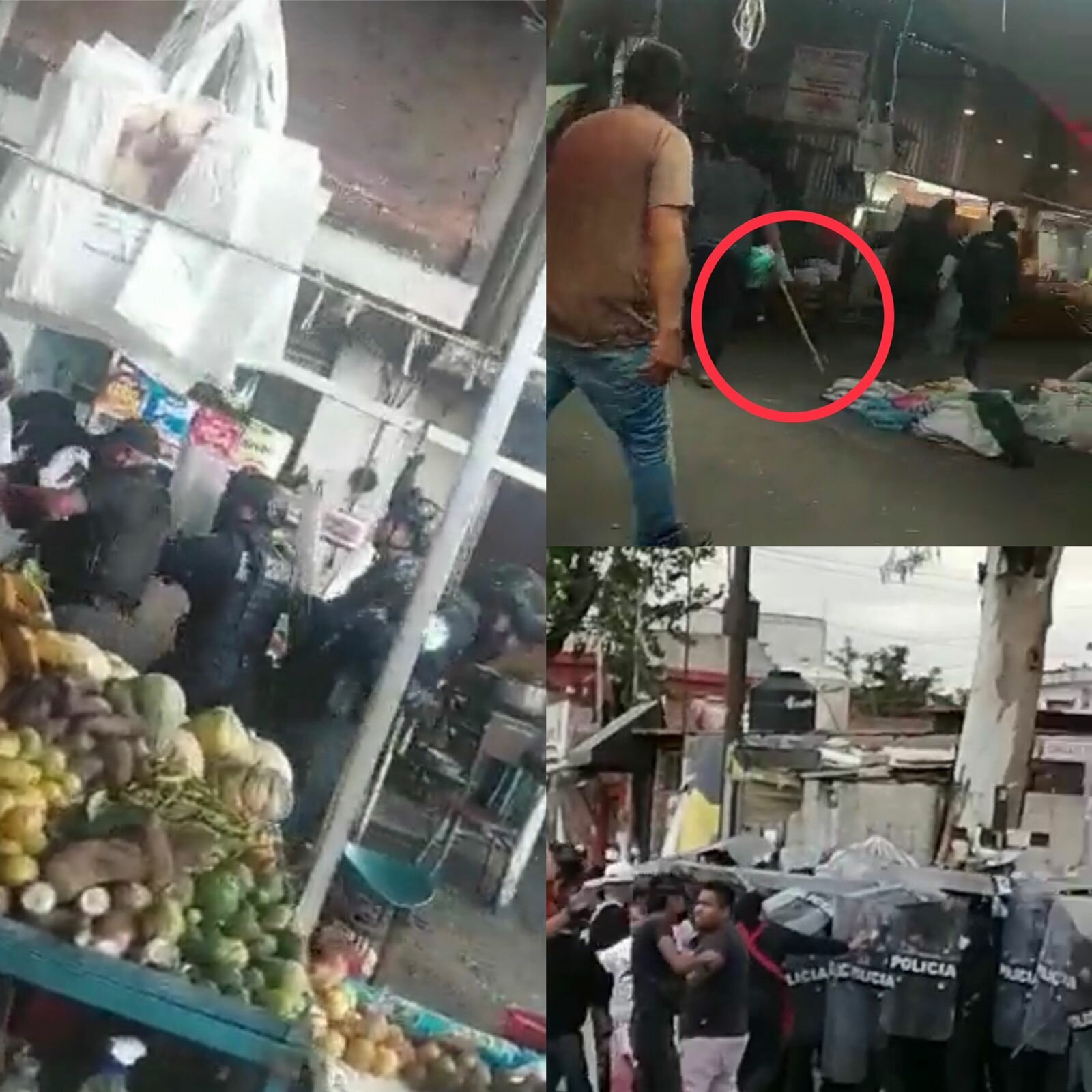 Los mismos comerciantes agarraron palos y empujaron a la Policía Municipal, que tuvo que replegarse en el estacionamiento de Soriana CAPU.