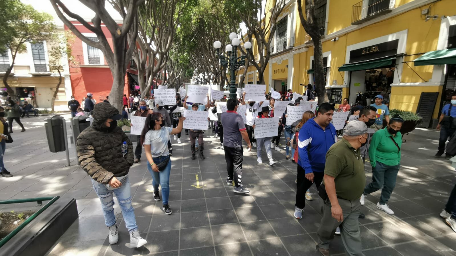 Nuevamente, comerciantes ambulantes realizaron una manifestación entre las calles seis oriente-poniente sobre cinco de mayo, hasta la 14 oriente poniente y de regreso, esto para pedir se les deje vender sobre las laterales de estas calles.