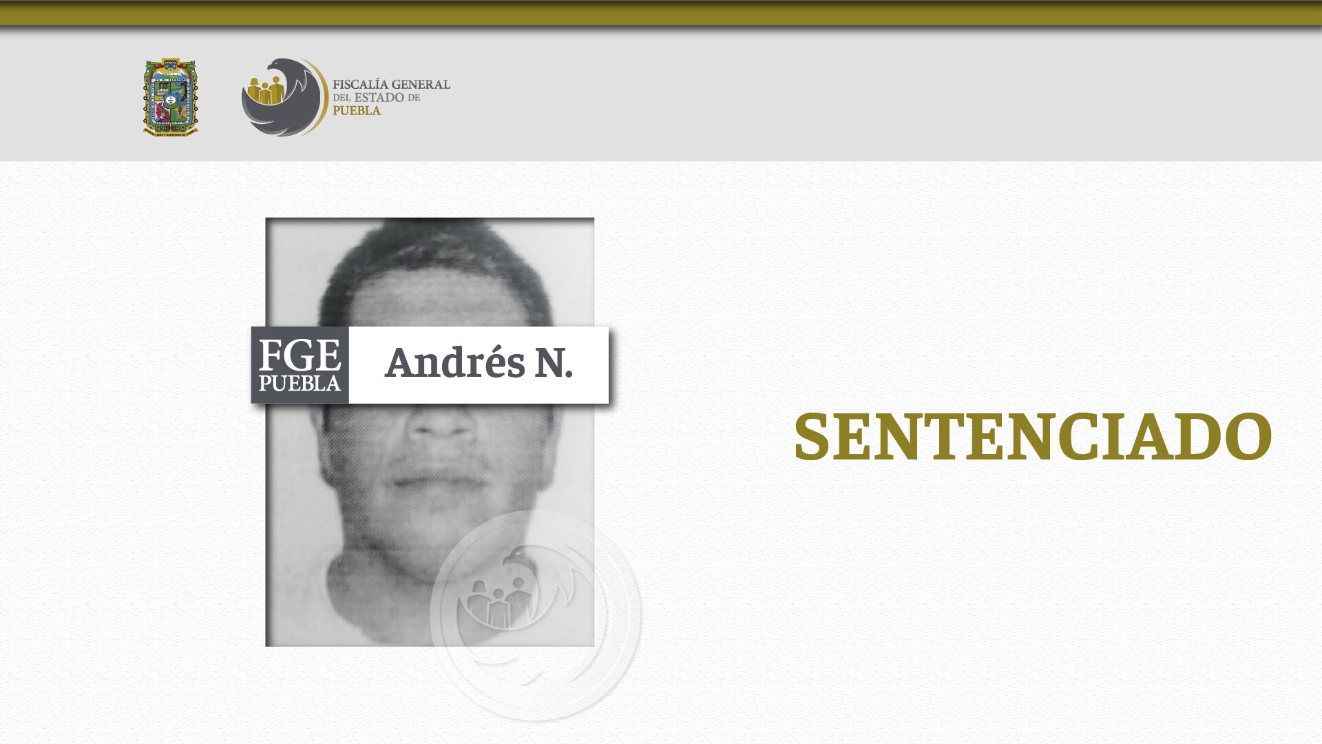 Al acreditar su responsabilidad en el delito de feminicidio, la Fiscalía General del Estado de Puebla logró que se dictara sentencia de 50 años de prisión contra Andrés N.