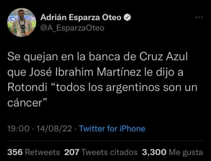 “Todos los argentinos son un cáncer”, habrían sido las palabras de Martínez a Rotondi como señala Adrián Esparza Oteo. En las próximas horas se podría dar a conocer si se abrirá una investigación por lo sucedido.
