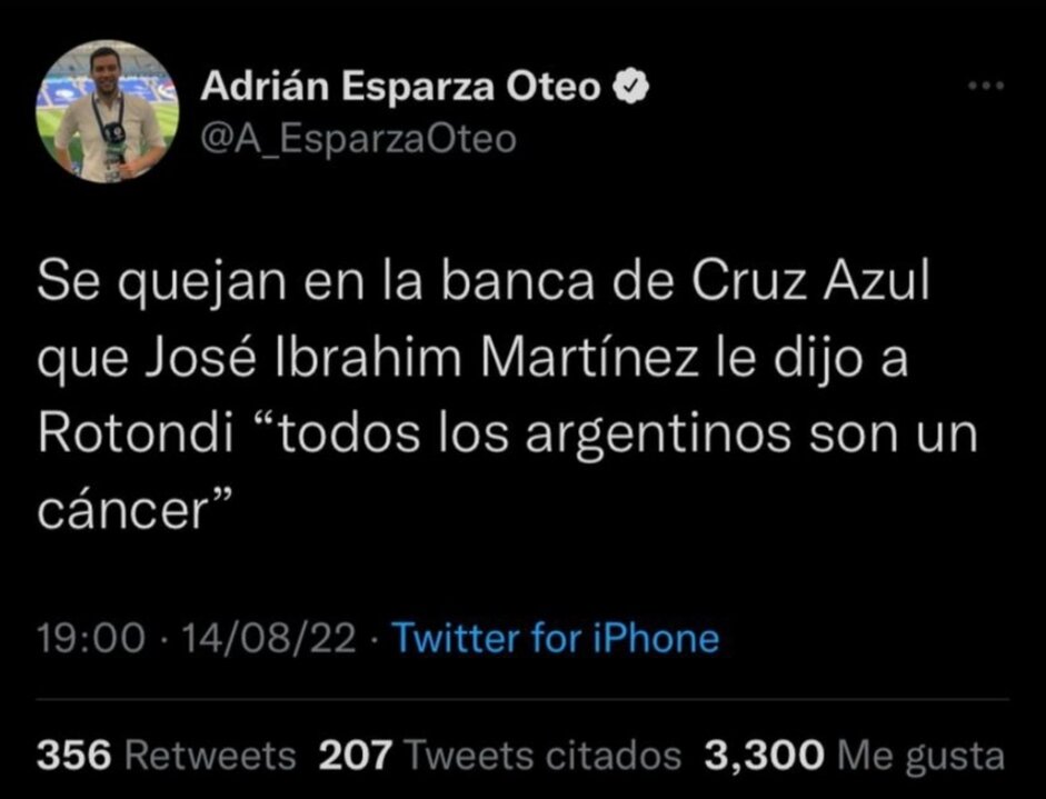 Según apunta Adrián Esparza Oteo, el supuesto comentario xenófobo que José Ibrahim Martínez le hubiese dicho a Carlos Rotondi, vino durante la polémica decisión de Fernando Hernández y el VAR de expulsar a Sebastián Jurado y marcar penal.
