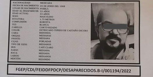 El artista plástico fue reportado como desaparecido desde el 19 de octubre, cuando lo vieron salir por última vez del fraccionamiento El Ángel, además de que nunca dijo a dónde se dirigía.