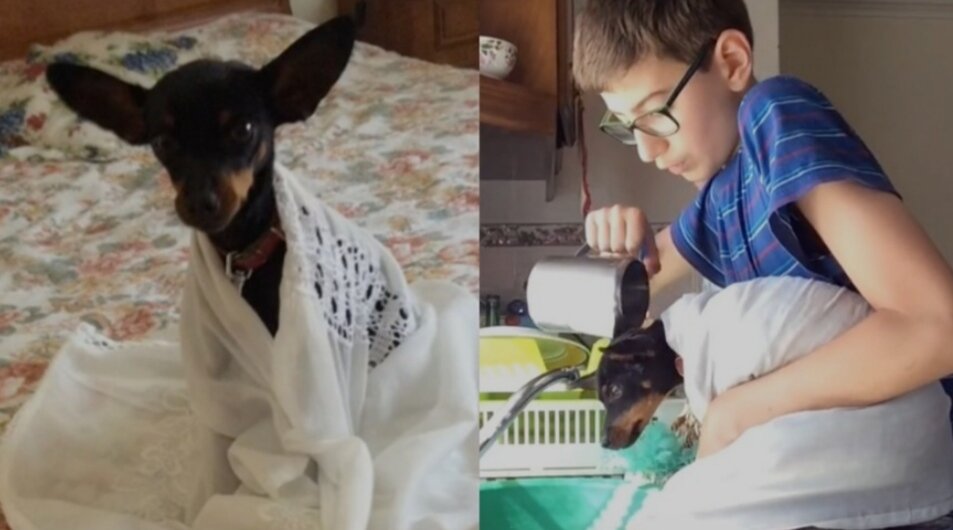 En TikTok, se compartió el video donde dos niños bautizan al perro de su abuela; esto, mientras ella está dormida y sin enterarse de la travesura.