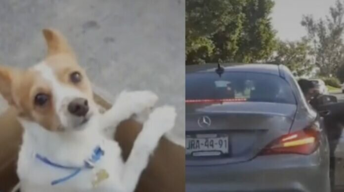 El tiktoker y un amigo suyo se encontraban en su coche cuando vieron al hombre del coche de enfrente, un mercedes, bajar a su perro dejarlo en una caja.