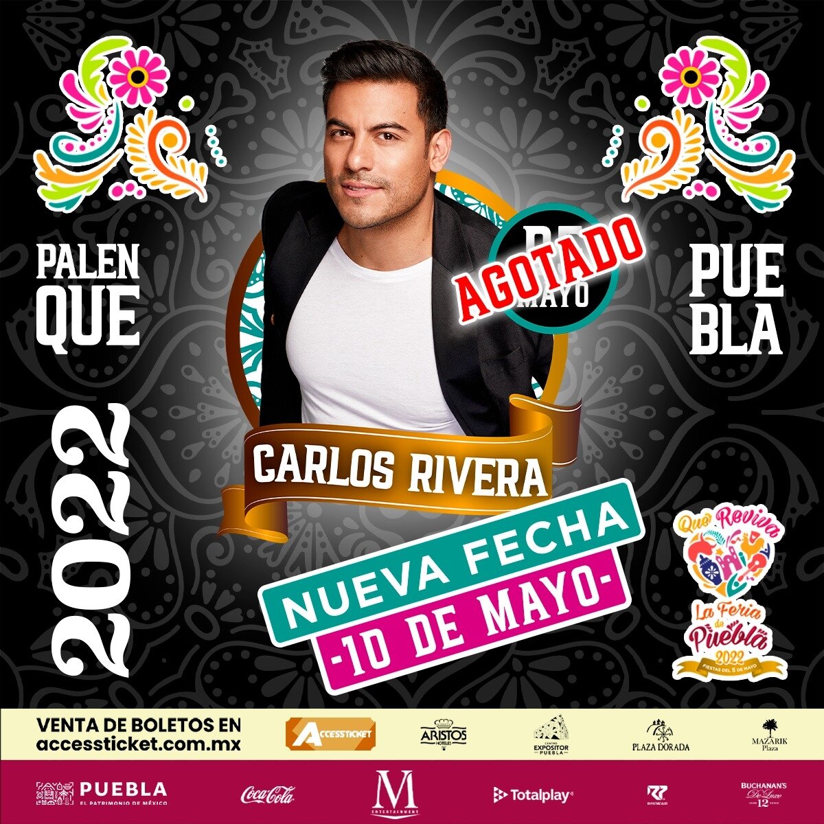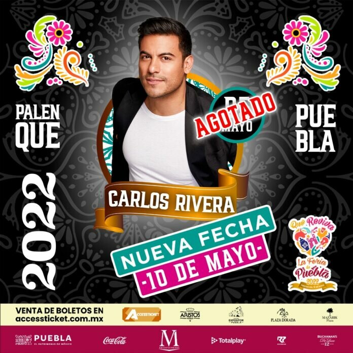 El artista Carlos Rivera es el primer cantante que repetirá fecha como parte del Palenque de Puebla y que integra las actividades de la Feria de Puebla 2022.