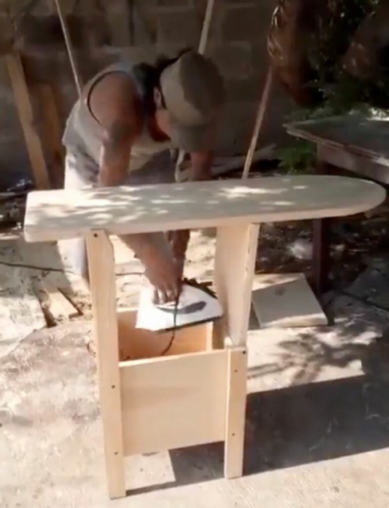 Aunque el camino hasta ese punto puede tomar un determinado tiempo, todo comienza con dar a conocer el producto terminado; así ocurrió con un carpintero que decidió crear con bastante ingenio y habilidad un burro para planchar, el cual se convierte ene silla, por lo que al ahora de desmontarlo se compacta y ocupa mucho menos espacio.
