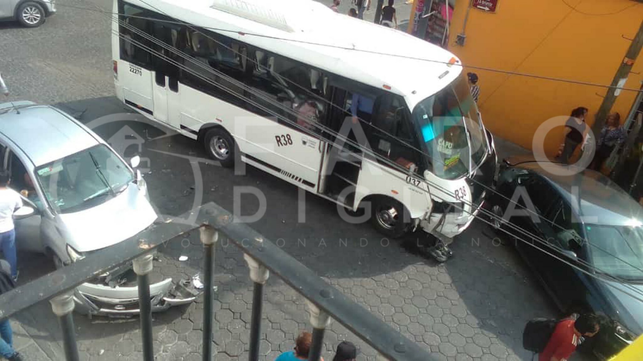Un choque entre dos particulares y una ruta de transporte público, se registró la tarde de este miércoles en el Centro Histórico de Puebla.