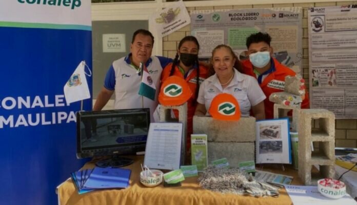Para elaborarlo, los estudiantes del Conalep Tampico utilizaron cemento y material reciclado, que hizo más ligero (unos 4 kilos menos) y resistente a su block, en contraste con los normales.