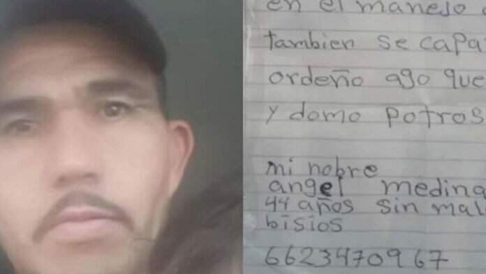 “Busco trabajo en rancho, tengo experiencia en el manejo de ganado, también sé capar, ordeñar, hago queso y domo potros. Mi nombre es Ángel Medina, de 44 años, sin malos vicios”.