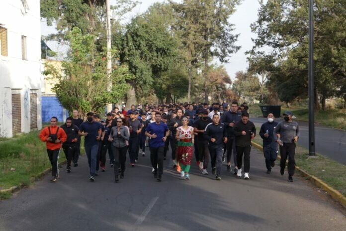 Con el objetivo de promover la actividad física y como un ejercicio de acercamiento, Eduardo Rivera Pérez, Presidente Municipal, encabezó la cuarta carrera con cadetes de la policía y jóvenes funcionarios en las calles de la colonia Bosques de San Sebastián, siendo la Academia de Seguridad Pública el punto de encuentro.