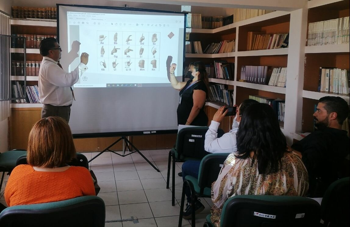 Mediante la enseñanza del alfabeto y vocabulario básico, los integrantes de la dependencia amplían sus conocimientos en tema de inclusión, además de trabajar para reducir la brecha de desigualdad y garantizar el respeto a los Derechos Humanos, al brindar más y mejores oportunidades a las personas con discapacidad.