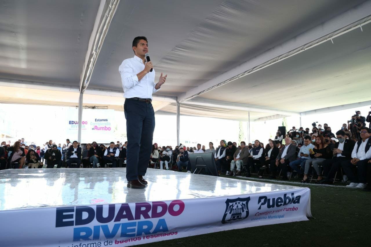 Eduardo Rivera, Presidente Municipal de Puebla continúa presentado el desglose de su Primer Informe de Buenos Resultados, en esta ocasión abordó el eje de Desarrollo Humano, que contempla diversas estrategias que buscan mejor la calidad de vida, la protección integral para niñas, niños y adolescentes, potencializar las capacidades de la juventud, promover la inclusión de los grupos en situación de vulnerabilidad, incentivar el deporte, prevenir y atender la violencia contra mujeres, así como su empoderamiento, además de promocionar actividades artísticas y culturales.