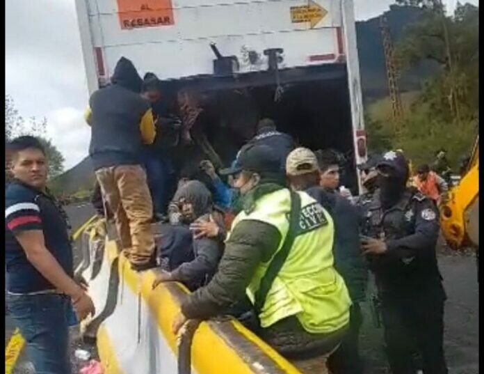 Intensa movilización policiaca se reporta en la autopista Orizaba-Puebla, a la altura de Ciudad Mendoza, en el estado de Veracruz, donde fue detenido un camión, con logos de DICONSA, que al ser revisado por elementos de Seguridad Pública, fueron encontrados más de 20 indocumentados que viajaban hacinados en la caja cerrada.
