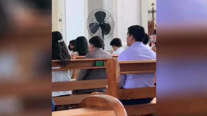 El video, que dura alrededor de siete segundos, muestra cómo el hombre disfruta del juego en un teléfono celular que fue colocado en el respaldo de las bancas de la iglesia, al parecer, se trató del partido Qatar vs Ecuador, partido inaugural del Mundial de Qatar 2022.