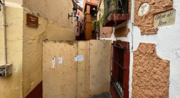 La Dirección de Imagen Urbana y Gestión del Centro Histórico puso una estructura de madera con el sello de suspensión de obra como medida de seguridad. Se dejó una puerta de acceso para las personas que habitan en el callejón.