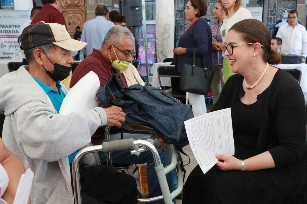 A la explanada del zócalo llegó Teresa Santos, originaria de la cabecera municipal, quien solicitó apoyo para iniciar un juicio de otorgamiento, a través de la orientación de la Dirección General de Tenencia de la Tierra, e información notarial por parte de la Defensoría Pública, ya que la casa que habita no cuenta con escrituras, solo con el contrato de compra-venta, y quiere dejar la propiedad a nombre de su hija.
