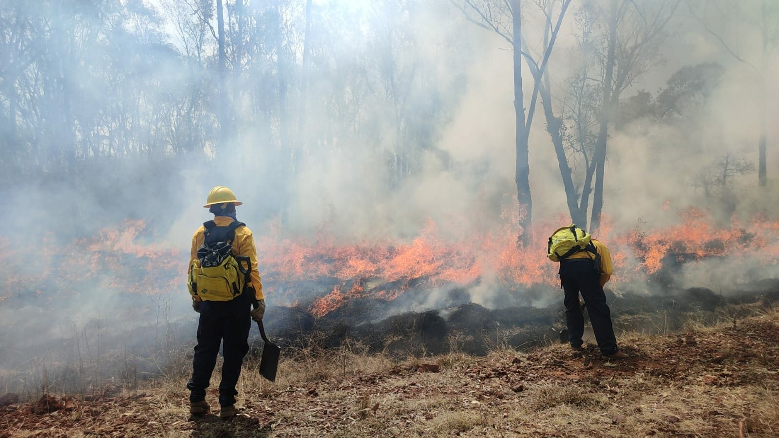 Blindados con su uniforme amarillo, un casco y una mochila que tiene un botiquín, es como salen estos expertos a enfrentar las llamas del fuego, que en combinación con el sol a plomo de esta época del año, se convierte en algo asfixiante para ellos, sin embargo, nunca huyen de su labor para evitar más daños a la naturaleza.