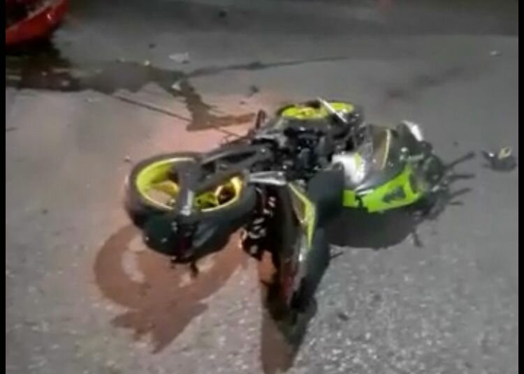 En este sitio, una camioneta Dodge, color rojo, impactó a una motocicleta color negro con verde, donde viajaban dos jóvenes, que no portaban el casco de seguridad.