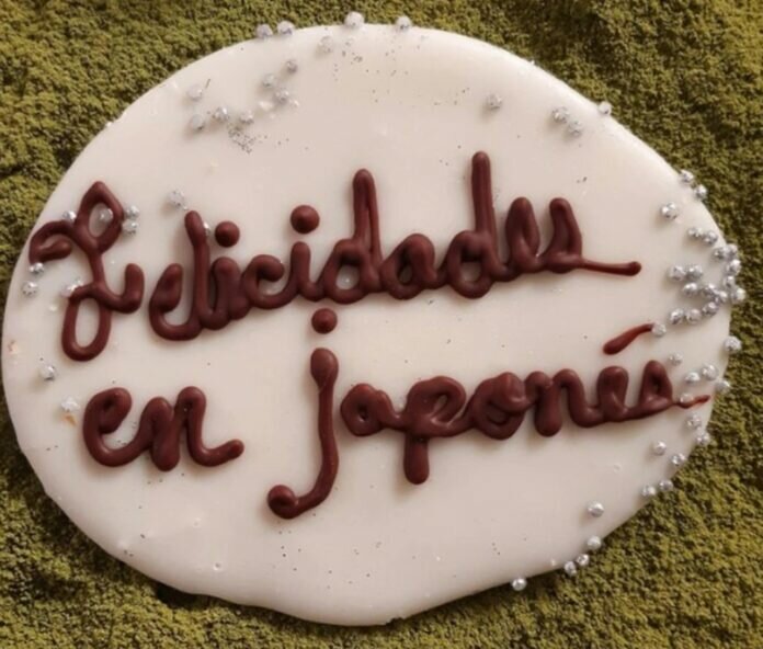 Pero la realidad es que no está claro si la persona que encargó el pastel dejó un ejemplo sobre cómo se escribe “felicidades” en japonés.