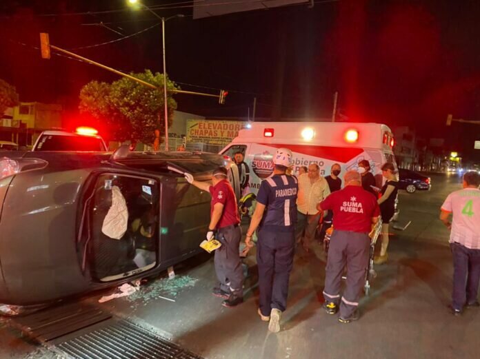 Una mujer que presuntamente manejaba en estado de ebriedad, terminó volcada sobre la 10 poniente y 7 norte, donde después tuvo que ser trasladada a un hospital para su atención médica por el accidente que sufrió.