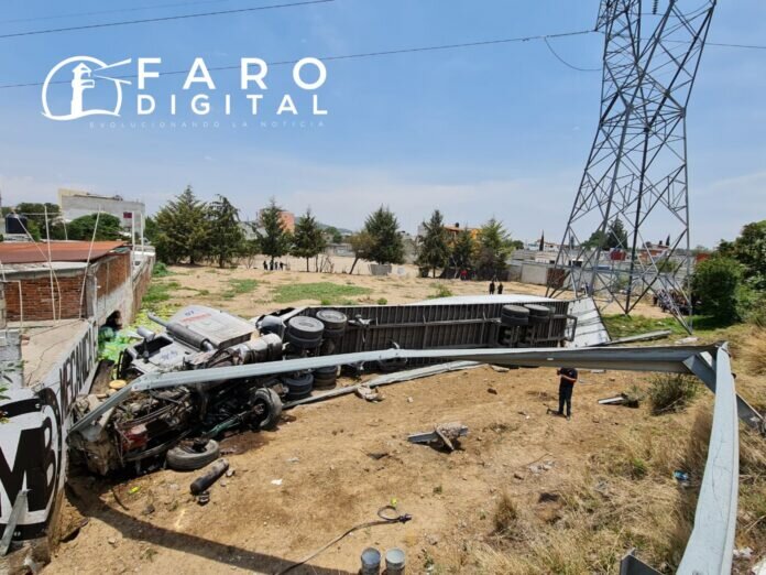 Al lugar de los hechos, arribaron elementos de Protección Civil, quienes empezaron hacer las maniobras para retirar a esta unidad pesada de carga.