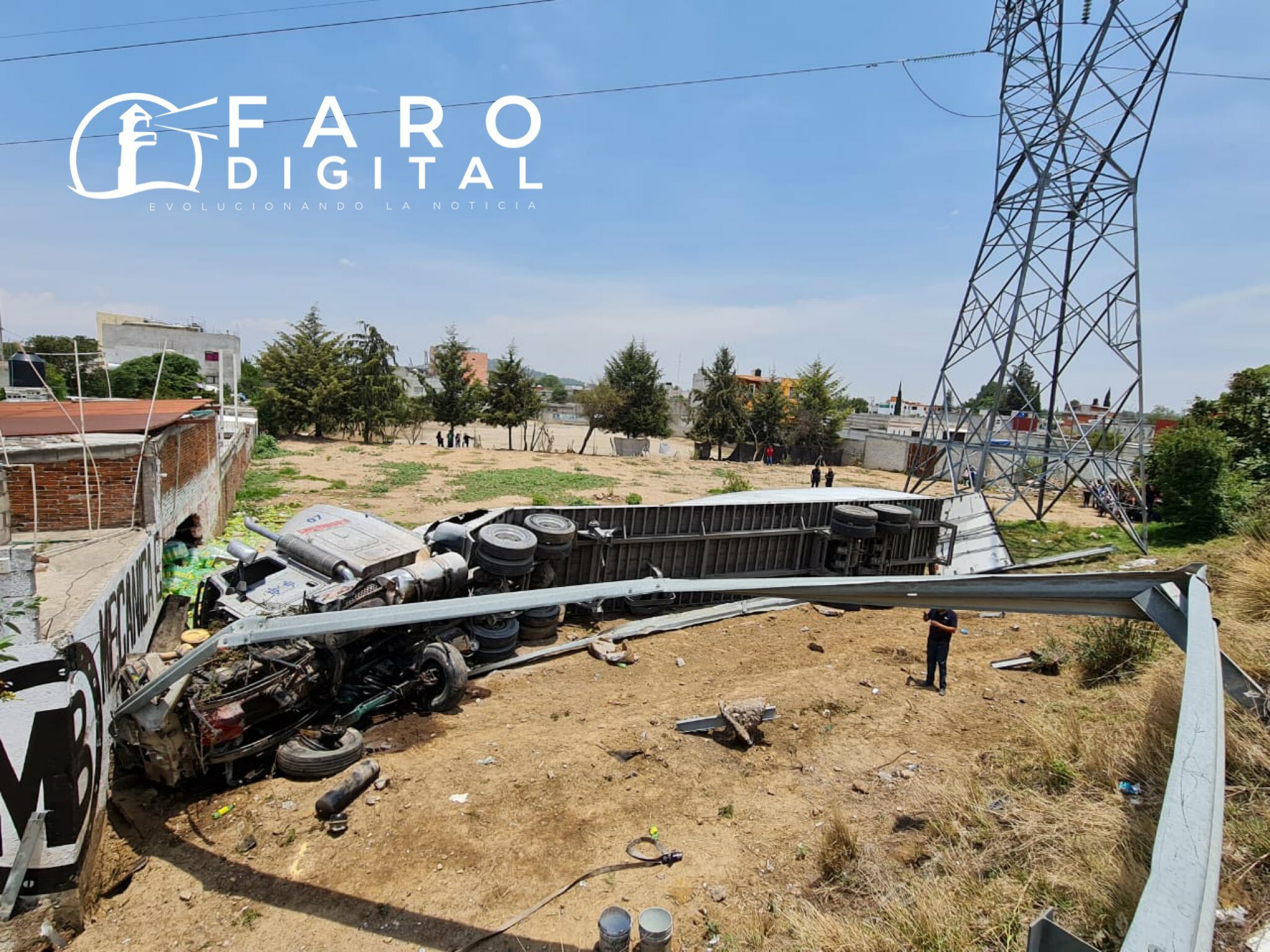 Un tráiler de refrescos terminó volcado sobre el Periférico Ecológico, a la altura de Casa Blanca la tarde de este lunes, donde presuntamente echaba carreras con otro camión de carga.