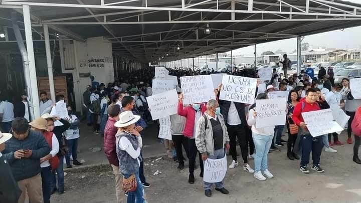 “Norma la presidenta quiere matar nuestra venta”, fue la consigna que los cientos de comerciantes expresaron durante su protesta que abarcó varias calles del municipio texmeluquense.