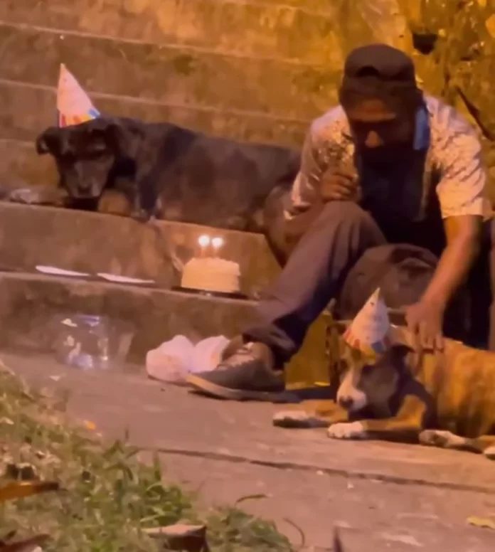 El video del festejo de cumpleaños de los perritos por parte del hombre sin hogar ha circulado ampliamente en redes sociales.