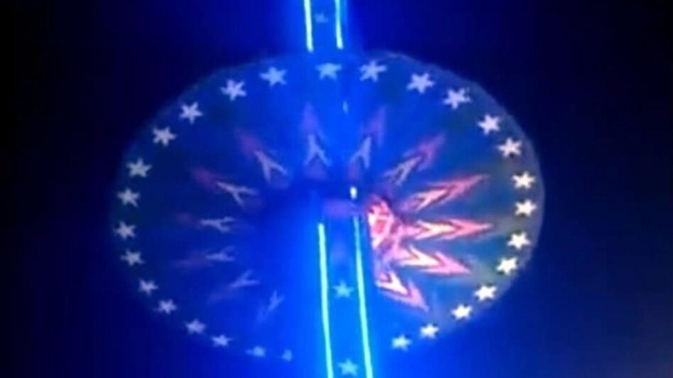 En las imágenes se muestra como el juego mecánico que se desplomó en una feria de India, se ve el recorrido normal.