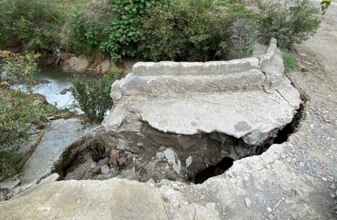 En las imágenes difundidas se puede visualizar como una parte del concreto se partió prácticamente dejando una zanja; así como hay una vivienda o comercio cuyo cimiento se desgajo de una esquina.