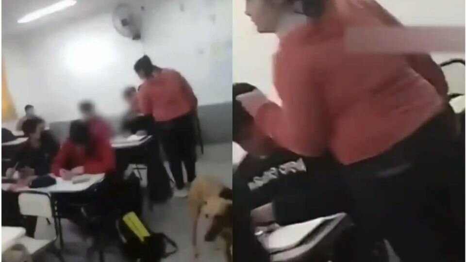 El alumno estaba sentado en su pupitre cuando de pronto llegó la mujer y le comenzó a reclamar por hacer bullying y supuestamente haber amenazado a su hijo. La situación quedó grabada en el celular de una persona que acompañó a la agresora.