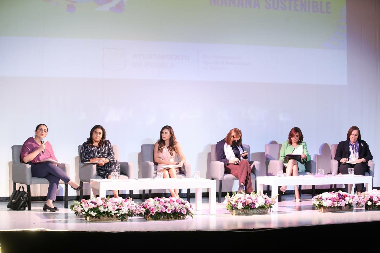 Con la participación especial de senadoras y legisladoras del Congreso de la Unión, el Ayuntamiento de Puebla celebró el panel “Igualdad de género hoy para un mañana sostenible”; mesa de diálogo que permitió compartir con la ciudadanía la importancia de afianzar una participación paritaria en el diseño de políticas y agendas de gobierno.