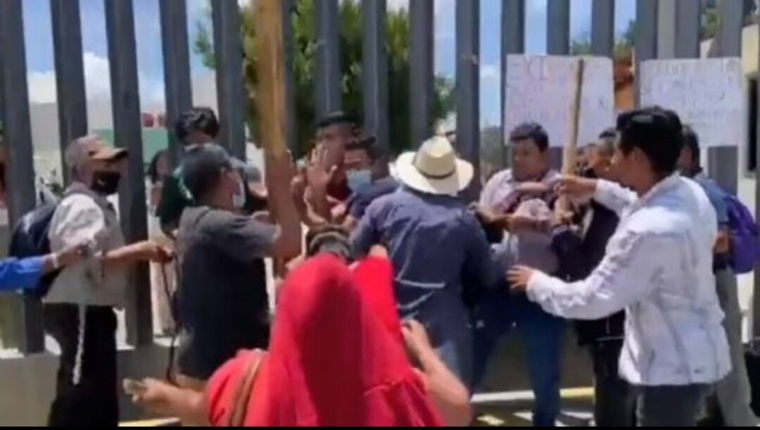 Con machete en mano, palos, piedras e insultos, los rijosos de Santa Inés del Monte que cerraron los accesos a recinto legislativo para obligar a los legisladores a atender su problemática interna, impidieron que los comunicadores abandonaran el lugar cuando ya se encontraban fuera del recinto.