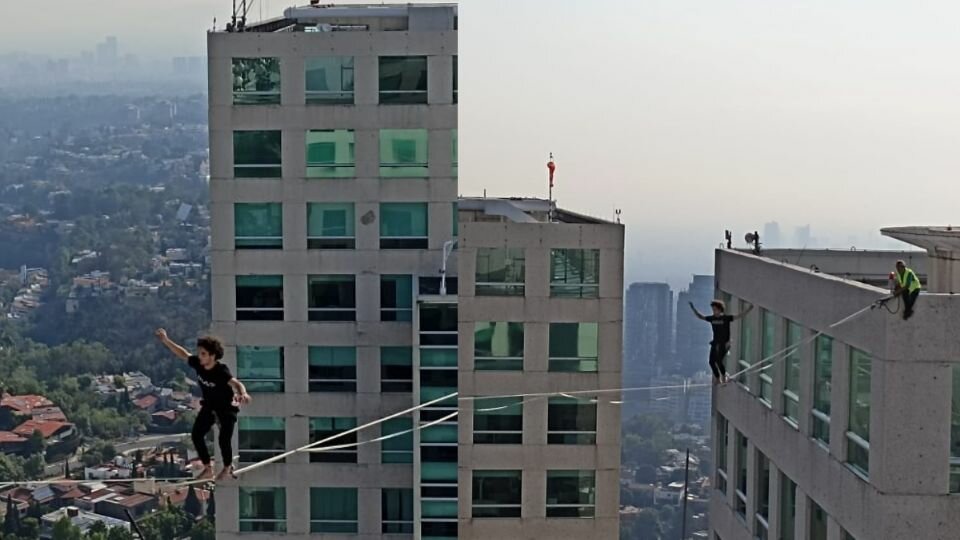 Y es que el joven influencer rompió un récord al haber sido el primero en haber colocado un highline (cintas ubicadas a más de 20 metros), a tal altura en la CDMX.