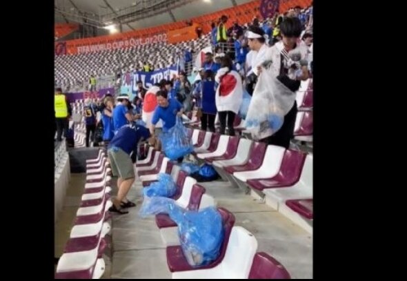 Y es que durante uno de los primeros partidos del equipo de Japón, se viralizaron fotos y videos de fanáticos que se quedaron al final del partido para limpiar el estadio de la basura que se había generado.