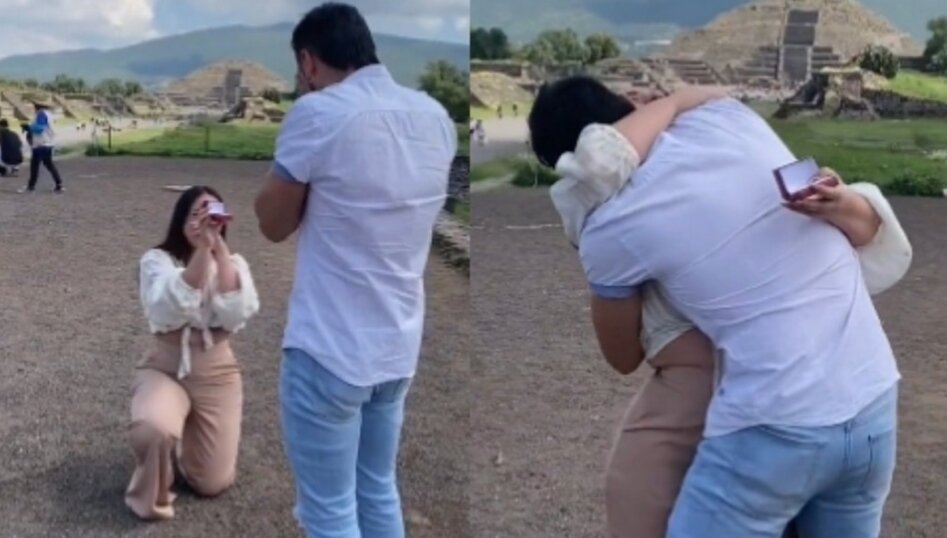 Mujer le pide matrimonio a su novio en Teotihuacán; usuarios de TikTok reaccionan a la historia romántica