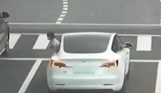 En tanto, el conductor, que al parecer no se dio cuenta del hecho, sigue manejando mientras la niña permanece en medio de la carretera.
