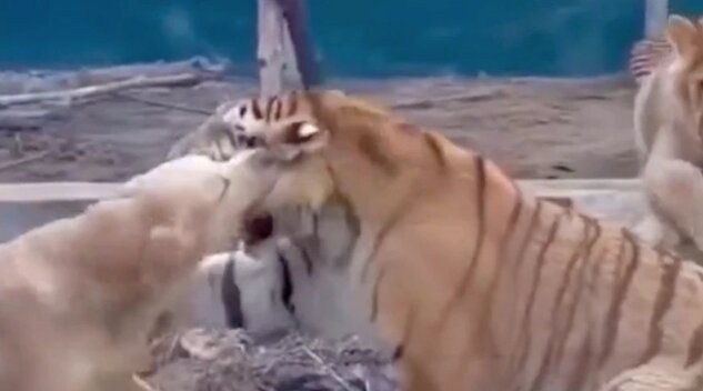 Incluso en el video compartido, el perro pareciera haberles ganado a los tigres quienes tendrían menos de alrededor de un año de edad.