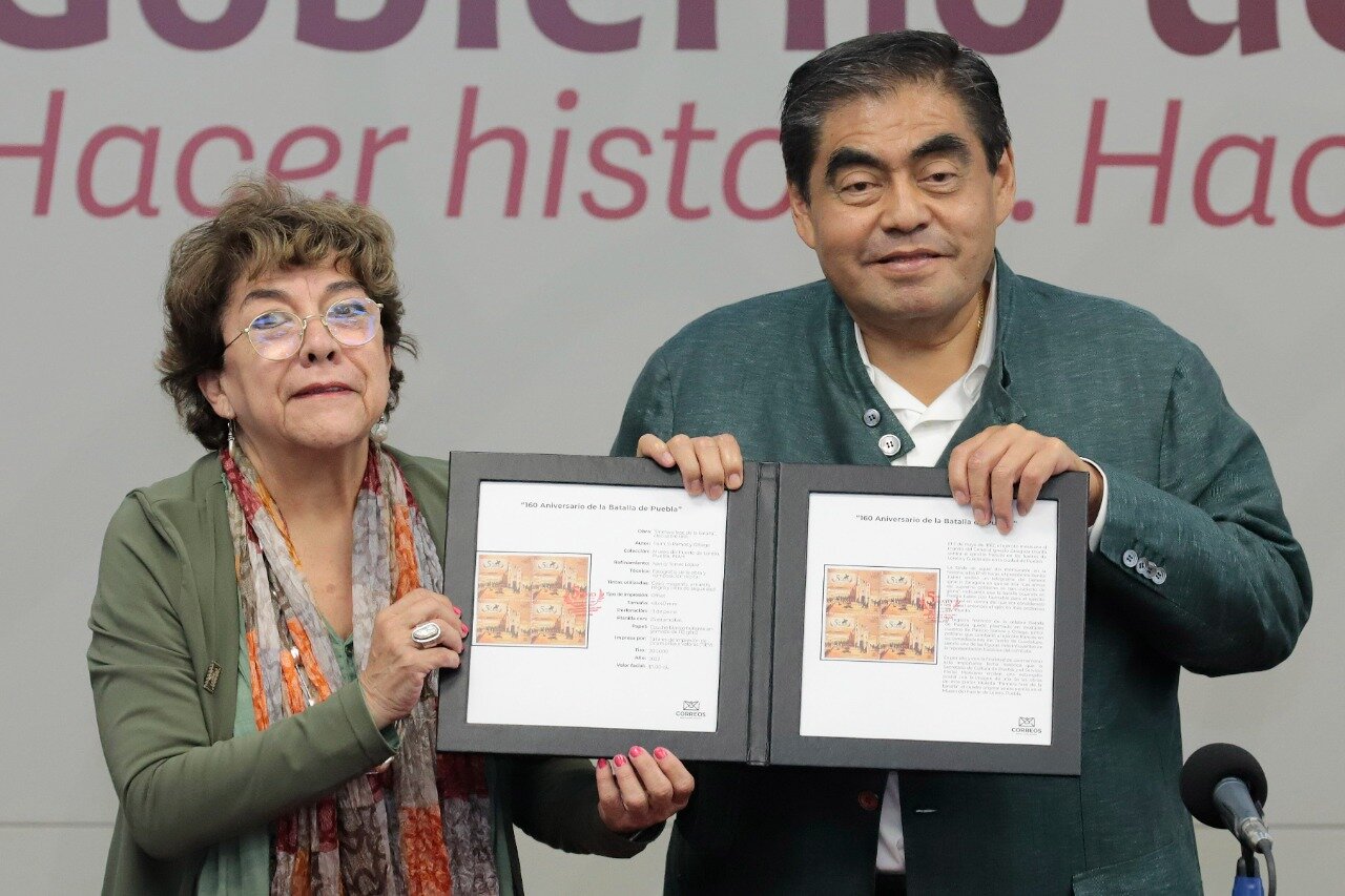 Como parte de las actividades por el 5 de Mayo y en compañía de la directora general del Servicio Postal Mexicano, Rocío Bárcena Molina, el gobernador Miguel Barbosa Huerta presidió la “Cancelación de la Estampilla Conmemorativa por los 160 Años de la Batalla de Puebla”.