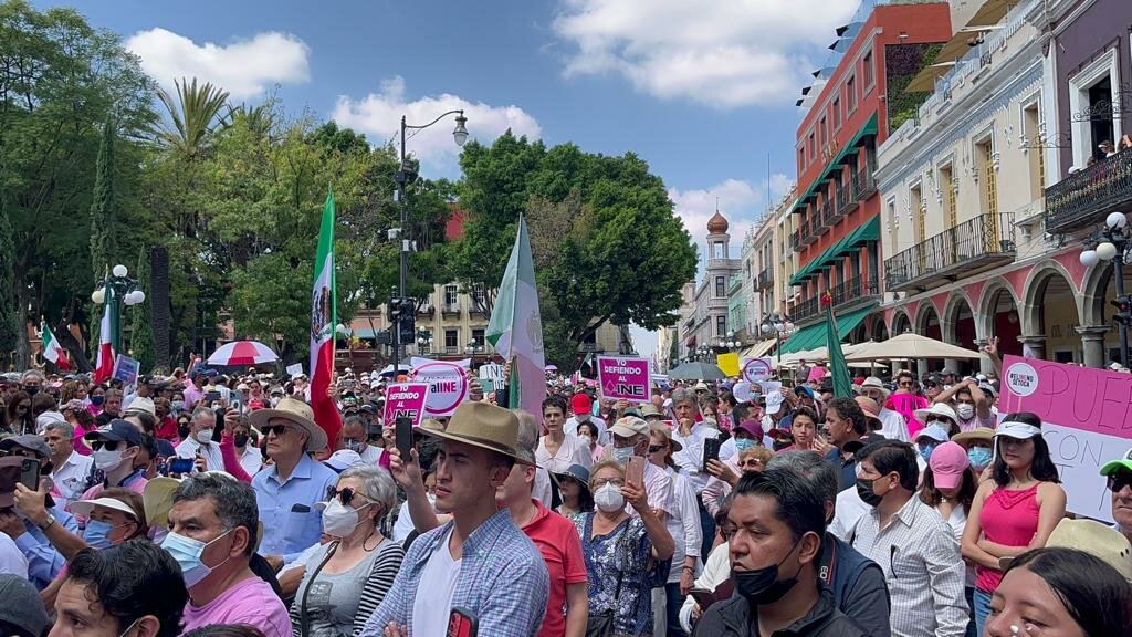 Cientos de panistas se apoderaron de algunas calles de Puebla capital, para expresar su rechazo a la reforma electoral que propuso el presidente de México, Andrés Manuel López Obrador.