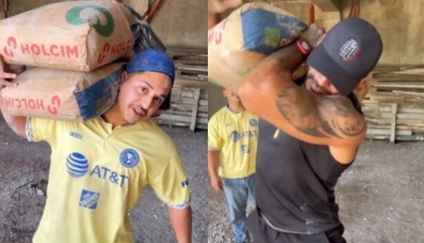 Después, la cosa se puso peor para el fisicoculturista, quien en el video de TikTok quedó exhibido por no poder cargar, hincado, dos bultos de cemento y el albañil si.
