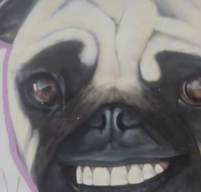 Aunque no es nada raro que quizás el artista haya tomado inspiración de un chiste, lo cierto es que entre tantos memes de pugs se logró crear el mural de perritos.