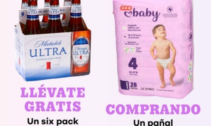 En esta ocasión, H-E-B México ofertó un six de cerveza en la compra de pañales para bebé, y la situación, calificada como extraña, fue aplaudida por los clientes.