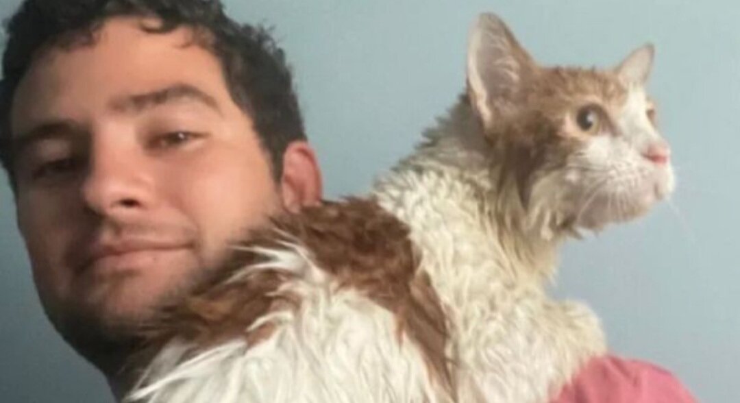 El felino estaba encima de una unidad de aire acondicionado, al costado de una casa en Bonita Springs, cuando el agua comenzó a brotar y se convirtió en una gran corriente. En ese momento llegó Ross a rescatar al gato.