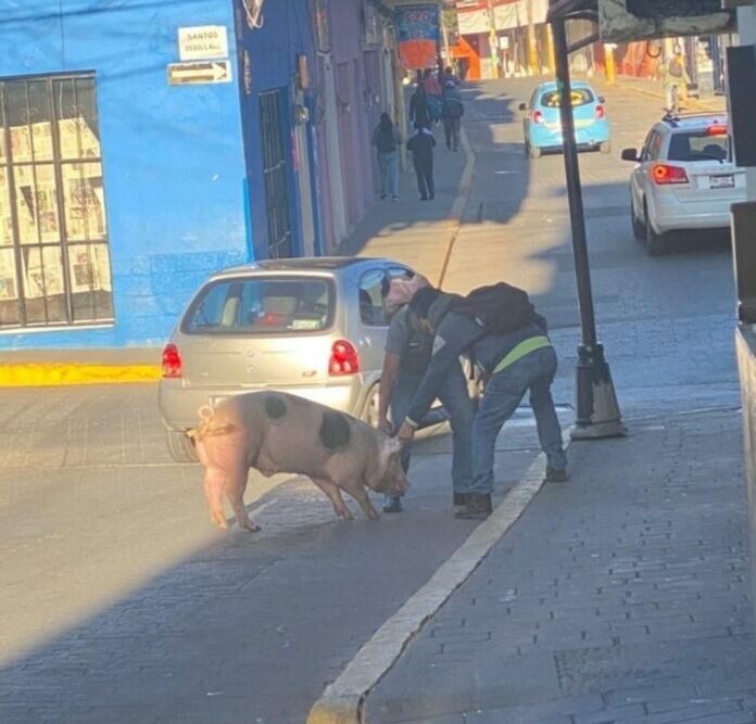“Babe, el puerquito valiente” salvó su vida y presuntamente evitó ser sacrificado en el Rastro Municipal de Huauchinango, pues saltó de la camioneta donde viajaba, provocando la curiosidad entre quienes atestiguaron el hecho.