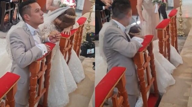 Una novia se desmayó momentos antes de poder dar el “sí acepto” en la ceremonia religiosa de su boda, y el momento fue captado por un invitado, quien compartió el video en TikTok.