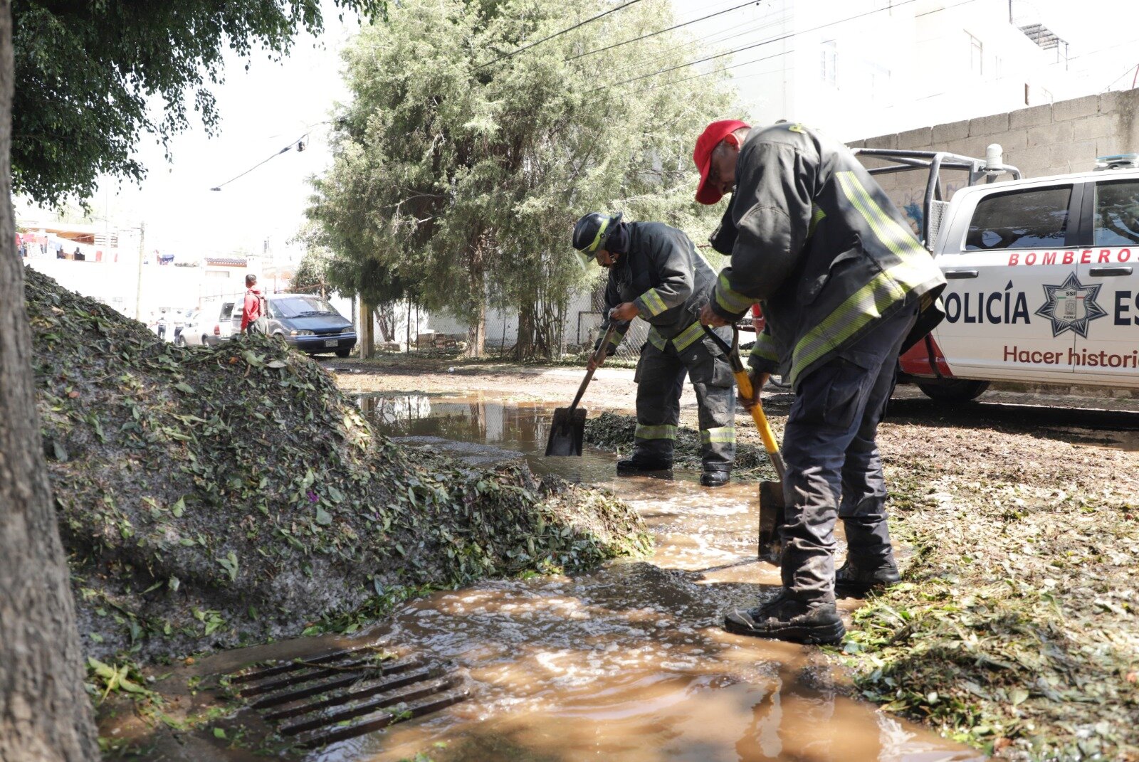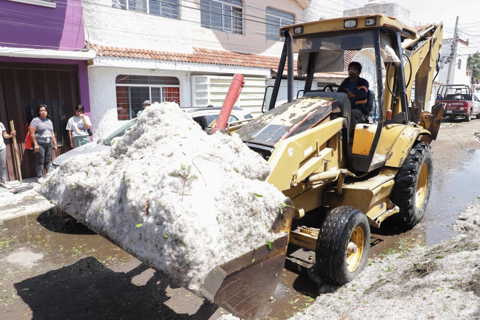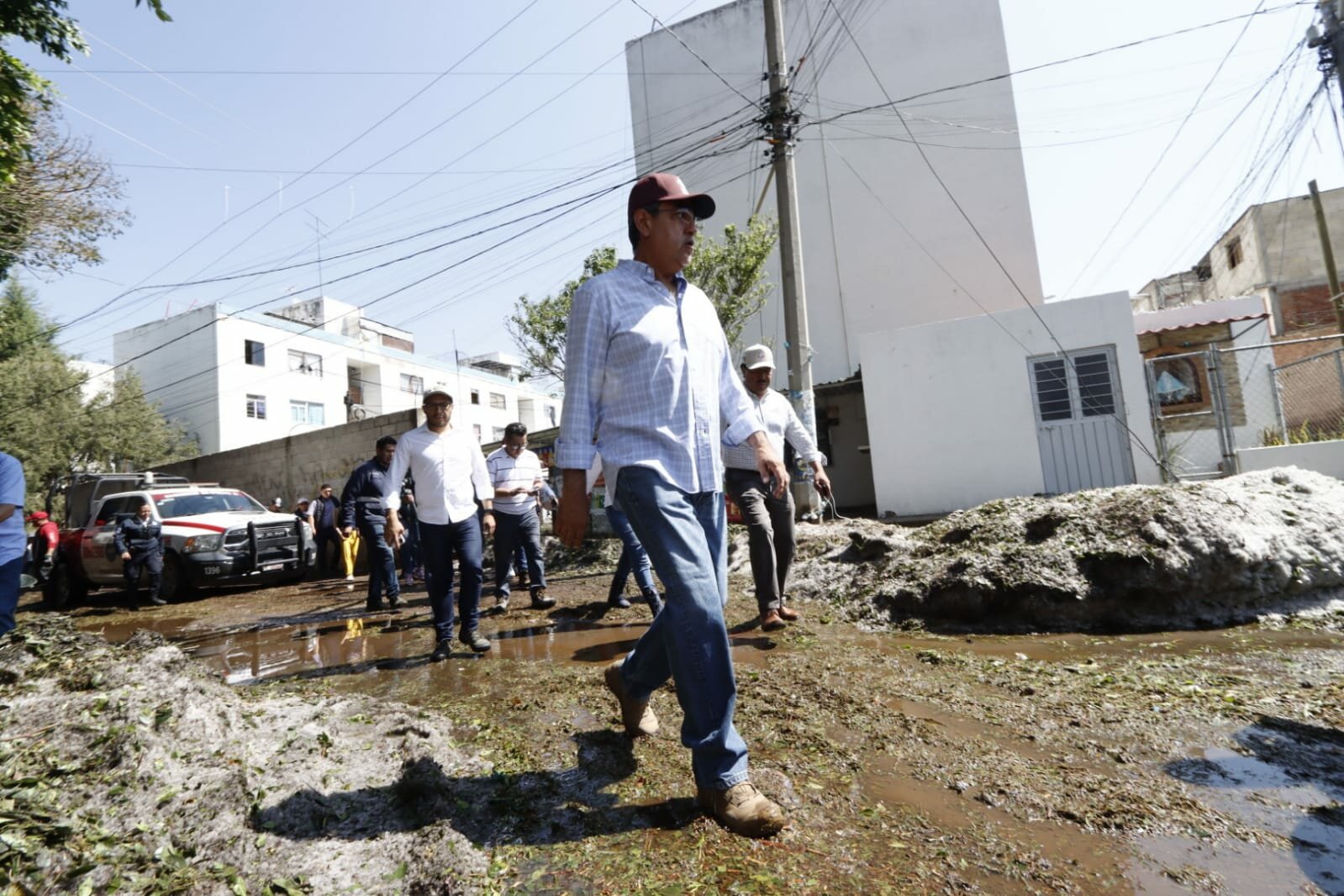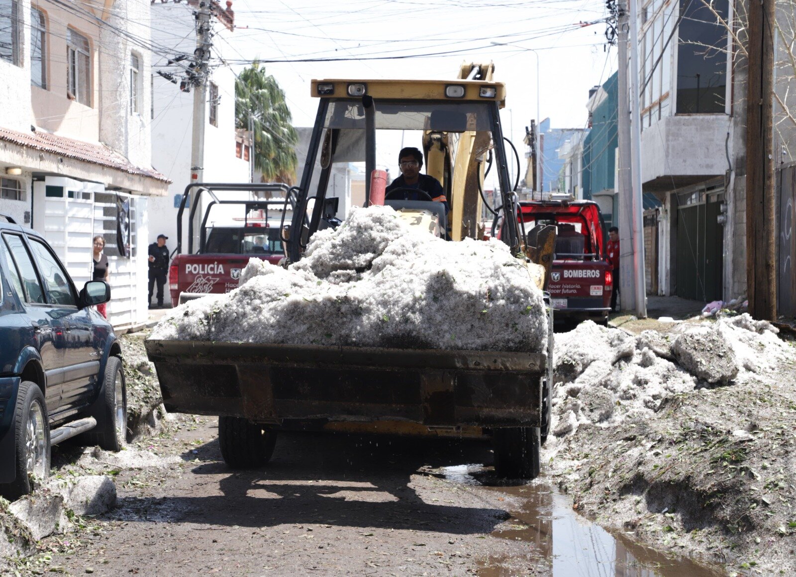 Entre las acciones inmediatas, se coordinó el envío de pipas de agua y el apoyo de cuerpos de emergencia para el retiro de granizo y lodo acumulado.