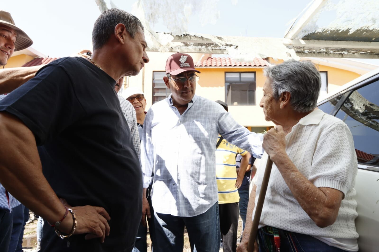 Durante la visita, el gobernador y el secretario de Gobernación, Javier Aquino Limón, ofrecieron su apoyo a los vecinos de la colonia Francisco I. Madero, donde al menos 40 viviendas sufrieron daños significativos.