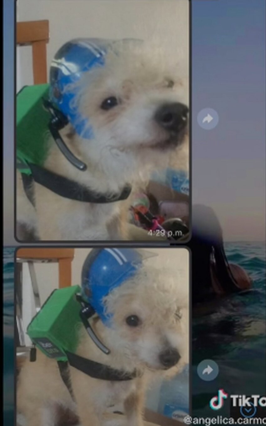 Fue la usuaria Angélica Carmona quien compartió un video de la perrita vestida como repartidora de Uber, luego de que su papá le hiciera un casco, su mochila y además le compraré un teléfono.