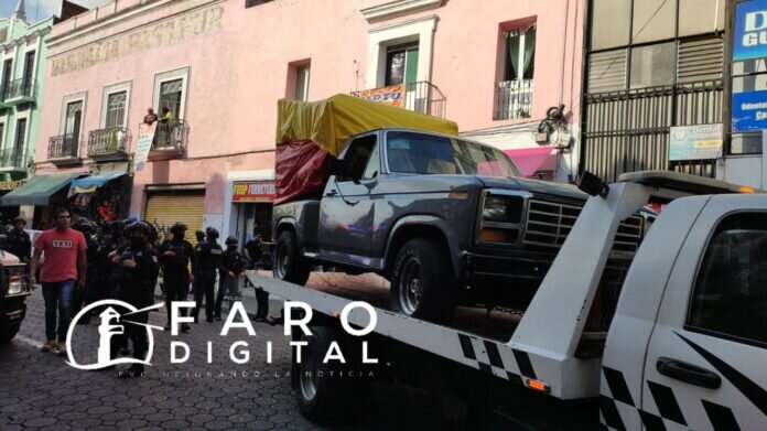 Personal del Ayuntamiento de Puebla y de la policía de la Secretaría dd Seguridad Ciudadana (SSC), desplegó un operativo en la 8 poniente y 3 norte, donde confiscarón una camioneta que era usada por vendedores ambulantes para comerciar sus productos.
